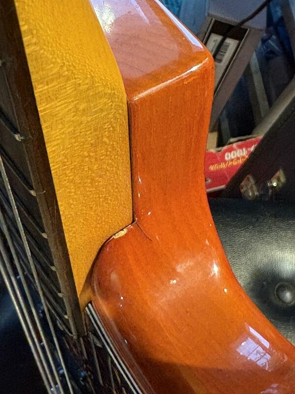 ネックのトラスロッドの左右にローズウッドの角材が埋め込まれている