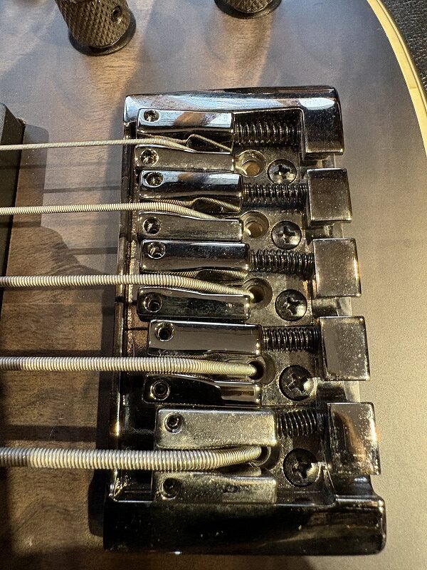そのため使用感は少ないですが写真には写らない程度の目立たない傷はあります。また、ブリッジサドルの5弦のみクスミが目立ちます。