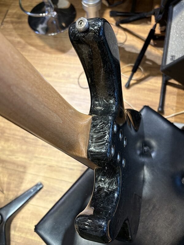 トラスロッドキャップ(ナット)の6角形がなめてしまっていたので、マイナスドライバーで回せるようにロッドキャップを加工しました。